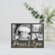 Passen Sie diese stilvolle, moderne, horizontale Weihnachtssaison Postkarte mit Imitaten Gold Text Peace und Liebe auf dunkelgrau / schwarz. Bitte beachten Sie, dass das Gold ein Farbdruck ist und keine Goldfolie ist. Ersetzen Sie die drei Vorlagenbilder durch Ihre bevorzugten 3 Fotos und ändern Sie alle Vorlageninformationen auf beiden Seiten mit Ihren eigenen. Dieses Design hat eine Formulierung: "Sie wünschen Ihnen eine freudige Urlaubssaison und ein neues Jahr voller Ruhe und Liebe." Aber Sie können die Worte mit Ihren eigenen ändern. *Fotovorlagen Credits: Foto 1: © Alexandre Normand; Foto 2: © Widerbergs; Foto 3: © Offizielle U.S. Navy Imagery.