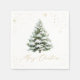 Minimal Pine Tree Merry Christmas Napkins featuring a snowy pine tree and a delicate script font reading 'Merry Christmas'