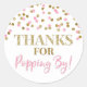 Gold Pink Confetti Thanks for Popping By Runder Aufkleber