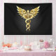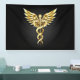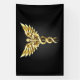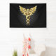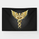 Gold polygonale Caduceus Symbole auf schwarzem abgeschiedenem Hintergrund. Low Poly Symbol der Medizin.