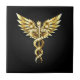Gold polygonale Caduceus Symbole auf schwarzem abgeschiedenem Hintergrund. Low Poly Symbol der Medizin.
