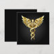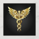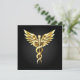 Gold polygonale Caduceus Symbole auf schwarzem abgeschiedenem Hintergrund. Low Poly Symbol der Medizin.