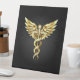 Gold polygonale Caduceus Symbole auf schwarzem abgeschiedenem Hintergrund. Low Poly Symbol der Medizin.