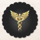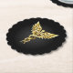 Gold polygonale Caduceus Symbole auf schwarzem abgeschiedenem Hintergrund. Low Poly Symbol der Medizin.