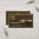Ein exquisit braunes Deckblatt ist mit einem goldenen rechteckigen Rahmen in Imitaten mit einem goldenen Tab in der Nähe der Mitte verziert. Oben auf der Karte befindet sich ein goldenes Power-Plug-Logo, das Sie verwenden können, wenn der Firmenname auf einem goldenen Tab liegt. Unter dem goldenen Logo finden Sie Ihren prestigeträchtigen Namen, Ihre Jobbezeichnung und die Kontaktdaten. Overleaf, das gleiche Design-Thema wird mit dem goldenen Logo oben verwendet, gefolgt von Ihrem angesehenen Namen, den Kontaktdetails und einer Slogan-Beschriftung, die Sie ändern können. Eine großartige Karte für Elektriker.