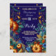 Wow deine Gäste mit dieser schönen Erntedank Dinner Party Einladung. Das Design ist blau, grün, botanisch, blau, geflora, goldene Kürbisse und Herbstfarben in dunkelblauer Umgebung. Die Rückseite hat ein Zitat - "Dankbar, Dankbar, Gesegnet" und passendes Design. Der "Text" lässt sich einfach mit Ihren Worten und Typografie anpassen.
