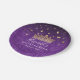 Looking for elegant party decor for a purple and gold quinceañera or another special celebration? Design your own personalized paper plates with this easy DIY template - perfect for adding your event name, date, or a custom message. The original floral fairy tale art by Raphaela Wilson showcases royal purple, lilac, and lavender watercolor roses accented with beautiful faux gold details, including a pretty princess tiara / queen crown and whimsical butterfly confetti. Whether you're planning a purple quinceanera (XV), an enchanted sweet 16 birthday party, a princess-themed baby shower, a once-upon-a-time bridal shower, or another magical event, these floral template plates bring a charming, storybook elegance to your décor. You can customize the royal design even further by changing the background color, adding an old scroll vintage parchment texture, or swapping the gold accents for metallic silver or rose gold blush pink. Keep the graceful calligraphy and modern fonts, or adjust the typography to best fit your style. If you'd like to include a welcome note or thank you message for your guests, feel free to personalize the editable text however you wish. Enjoy! Category: girly butterfly mis quince anos party plates; purple rose wedding paper plates; and cute purple baby shower paper plates for her. Mexican purple quince party theme colors: royal purple, dark purple, plum amethyst, lavender, lilac, faux metallic yellow champagne gold, black and white.