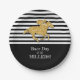 Gold Race Pferd auf schwarzen und weißen Streifen Pappteller