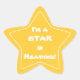 Ein heller Goldsternaufkleber mit einem weißen Sternchen im Inneren, und die Worte in Weiß: "Ich bin ein Stern im Lesen!" Der Text ist vollständig anpassbar, sodass Sie ihn sagen lassen können, was Sie wollen. Ein kluger und lustiger Weg, einen guten Schüler zu erkennen.