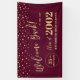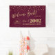 Dieses moderne Begrüßungsbanner eignet sich perfekt für ein Wiedersehen-Party in bordeauxrotem und goldenem Ambiente. Ein stilvolles Party-Banner, um sich an Ihren besonderen Tag zu erinnern. Das Design verfügt über goldene Typografie " Welcome Back! " mit konfetti Hintergrund. Sie können das Studienjahr, den Schulnamen und das Veranstaltungsdatum individuell gestalten.
