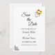 Elegantes Gold klingelt auf Schwarz-Weiß-Hochzeitkarte Save the Date. Die Blume chrysanthemum auf der Vorderseite und zwei Herzen auf der Rückseite können individuell angepasst werden. Ideal für Paare, die an ewige Liebe glauben. Die Blume chrysanthemum steht für Königtum. Das Herz unter den Ringen suggeriert einen liebevollen und religiösen Kompromiss.