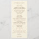 Dieses moderne Hochzeitsdesign besticht durch einen minimalistisch-cremefarbenen Hintergrund mit eleganter brauner Serife und Schriftzeichen. Ein handillustriertes Goldring-Paar fügt eine klassische Touch hinzu, die Einheit und Liebe symbolisiert. Die Vorderseite hebt eine klare Reihenfolge der Zeremonie hervor, während die Rückseite die Hochzeitsfeier in einem raffinierten, leicht lesbaren Layout präsentiert. Dieses Design ist perfekt für zeitgenössische, formelle oder Weinberge Hochzeiten geeignet und verbindet zeitlose Tradition mit moderner Einfachheit. Die herzliche Danksagung am Ende bietet den Gästen eine persönliche Note.