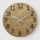 Ein Muster aus hellgelbem und dunkelgelbem Gold in metallischem Look schmückt diese Wanduhr in einem runden Gewölbemuster, sodass sie wie Goldflecken aussieht. Ich malte das originale Gemälde aus Gold und modifizierte es dann mit künstlerischer Software, um das Gewölbemuster zu erreichen. Es hat einen reichen und eleganten Look und große schwarze Zahlen. Kaufen Sie online bei CherylsArt auf Zazzle.