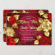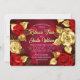 Romantische und moderne Blumen-Hochzeitseinladung mit Schwarz, Gold und rote Rosen - klassische Farbtöne, die nie aus dem Stil verschwinden. Gold-Blume.