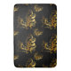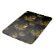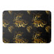 Ein sehr elegantes Muster mit großen Schnörkeln aus metallischem Gold mit verzierten Blätter und Wirbel, verstreut auf einem schwarzen Hintergrund.