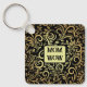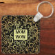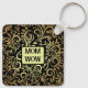 Atemberaubendes Schwarz-Gold-Muster auf einem Schlüsselring, mit Monogramm mit MAMA und WOW als Spiegelbild der MAMA zum Muttertag.