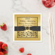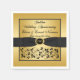 Diese edlen, goldfarbenen und schwarzen, blumengeschmückten Papierservietten aus dem 50. Hochzeitstag haben einen DRUCKEN auf schwarzem Band und Bogen mit einem bedruckten dekorativen Knopfmedallion mit "50" darauf und einem wunderschönen kursiven Text, der "Goldenes Hochzeitjubiläum" sagt. Sie sind personalisiert mit den Namen des Paares und dem Hochzeit / Jubiläum.