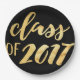 Cooles modernes Gold und schwarzer Abschluss-Party-Teller mit "Klasse von 2017" im Großen Hand-mit Buchstaben gekennzeichneten glänzenden Goldfoliendruckeffekt.