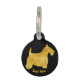 Gold Scottie Personalize Sie Kann dieses ID-Tag so anpassen, dass der Name Ihres Hundes auf der einen Seite und Ihr Name und Ihre Adresse auf der anderen Seite angegeben werden. Wählen Sie Ihre eigenen Schriftart Stile, Farben und Hintergrundfarbe.