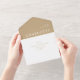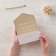 Mit stilvoller Kalligrafie kann diese goldene und weiße Hochzeitseinladung leicht mit allen Informationen über Ihren besonderen Hochzeitstag personalisiert werden.