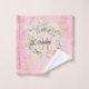 Hübsche monogramm Badehandtücher mit einem schönen Schriftnamen und einem vergoldeten Initial, der durch eine zarte Aquarellgarage mit blühender Rose gerahmt ist, auf einem rosa Geode-Age-Hintergrund. Personalisieren Sie sich, um ein besonderes Geschenk zu erhalten! Entwickelt von Thisisnotme©