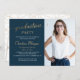 Gold Script Navy Blue Graduation Party Foto Einladung