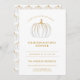 Einfache und niedliche Einladungen zum Abendessen mit stilvollen, goldfarbenen Kürbissen. Auf der Rückseite der Karte befindet sich das goldweiße Kürbismuster auf einem sauberen, weißen Hintergrund. Diese modernen Kürbisfreunde laden zu einer Ansammlung ein. Alles Gute zum Erntedankfest!