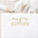 Elegante, moderne Weihnachtsfamilien in Gold und Weiß-Hand-Rücksendeadressen-Aufkleber. Mit einem hübschen handgeschriebenen Kalligraphie-Swash-Schwanz Schriftart-Skript mit Sprichwort "Frohe Weihnachten", ein kleines Liebe Herzmotiv. Ideal für die Weihnachtszeit, einfach zu personalisieren mit Ihren Namen und Rücksendeadresse-Infos.
