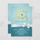 Gold Script White Ribbon Turquoise Baby Dusche Einladung