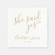 Diese stilvolle goldene "sie hat ja gesagt"-Verlobungsparty-Serviette kann mit den Details Ihrer Verlobungsparty personalisiert werden. Entwickelt von Thisisnotme©
