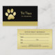 Gold Shiny Dog Paw auf Black Pet Grooming Service Terminkarte