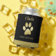 Gold Shiny Dog Paw auf schwarzem Hintergrund. Du musst wissen, dass du ein Foto bekommst!