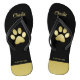 Gold Shiny Dog Paw auf schwarzem Hintergrund Flip Flops