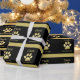 Gold Shiny Dog Paw auf schwarzem Hintergrund Geschenkpapier