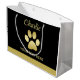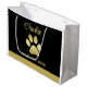 Gold Shiny Dog Paw auf schwarzem Hintergrund Große Geschenktüte