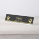 Gold Shiny Dog Paw auf schwarzem Hintergrund Schreibtischnamensplakette