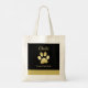 Gold Shiny Dog Paw auf schwarzem Hintergrund Tragetasche