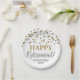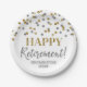 Gewohnte glückliche Ruhestand Teller in Gold und Silber Konfetti Muster.