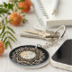 A symmetrical mandala design featuring intricate a yin yang floral pattern in gold and silver.