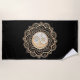 A symmetrical mandala design featuring intricate a yin yang floral pattern in gold and silver.