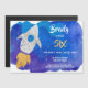 Gold Silver Rocket Ship Weltraum Geburtstagsparty Magnetic Einladung. Galaxie in Aquarellfarben, Imitat- und Silberfoliengeflecht, Material für Geburtstagsparty im Weltraum www.SamAnnDesigns.com