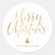 Gold Simple Calligraphy Frohe Weihnachten Runder Aufkleber