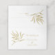 Ein Gold Single Stiel Leaf Form für einen Namen und Tischnummer Platz Inhaber. Text und Bilder auf beiden Seiten.