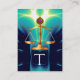 Elegantes Gerechtigkeitssymbol, künstlerisch.Klassische goldene Skalen mit lila 3D-Edelsteinen , leuchtenden Lichtern und Fraktal-Wellen in Aquablau, Türkis, aquamarin, gelb, weiß von Bulgan Lumini (c).