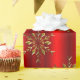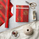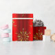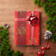 Ein elegantes, rotes Weihnachtsgeschenk mit einem Muster glänzender Goldschneeflocken (oder Weihnachtssterne), verstreut über einen metallischen roten Hintergrund, um Ihrem Weihnachtsgeschenk-Umschlag in diesem Dezember etwas Eleganz und Stil hinzuzufügen.