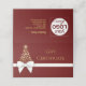 Luxuriöses und reichhaltiges Urlaubsprojekt mit einer herrlichen Weihnachtsbaum-Silhouette mit goldenen Schneeflocken. Mit einem weißen goldenen Geschenkbogen auf einem roten, üppigen Hintergrund dekoriert. Dieses festliche Geschenkgutschein ist ideal für kleine Firmen oder für kleine Gruppen.