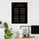 Machen Sie Ihren Hochzeitsempfang mit dieser Sitzkarte schön, die ein elegantes und dennoch skurriles Design aus rosa und goldenen Sternen mit goldenem Text über einem schwarzen Hintergrund bietet. Dieses Diagramm zeigt die Tabellenzuordnungen, damit Ihre Gäste den richtigen Tisch leicht finden können.