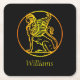 Gold Sphinx Runde auf schwarz Rechteckiger Pappuntersetzer