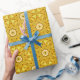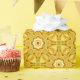 Ein Fliesenmuster aus gelben Kaleidoskop-Fraktalen.
