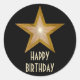 Gold Star "Happy Birthday" Rundaufkleber schwarz Runder Aufkleber